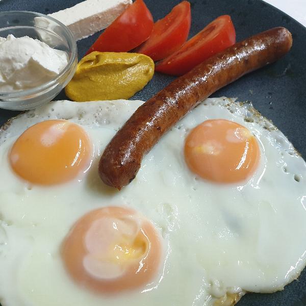 (tortilja, 2 jajeta na oko, avokado, paradajz, paprika, zelena salata, kukuruz, pavlaka, limun)