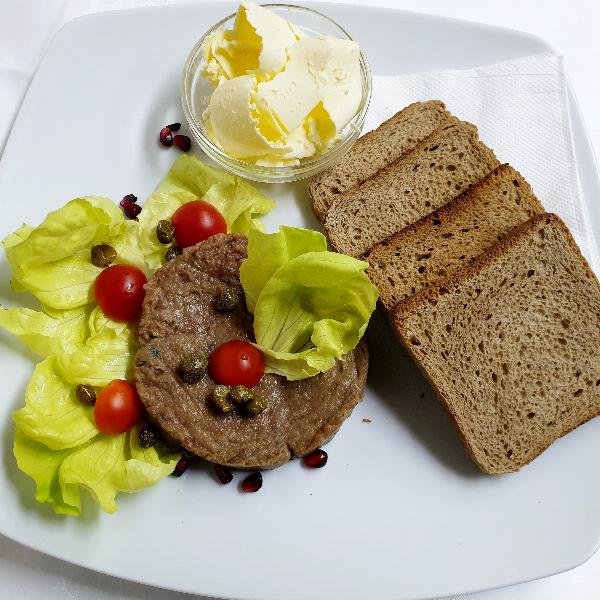 (pileći file, šunka, trapist, pire krompir, karamelizovana cvekla, tatar sos)