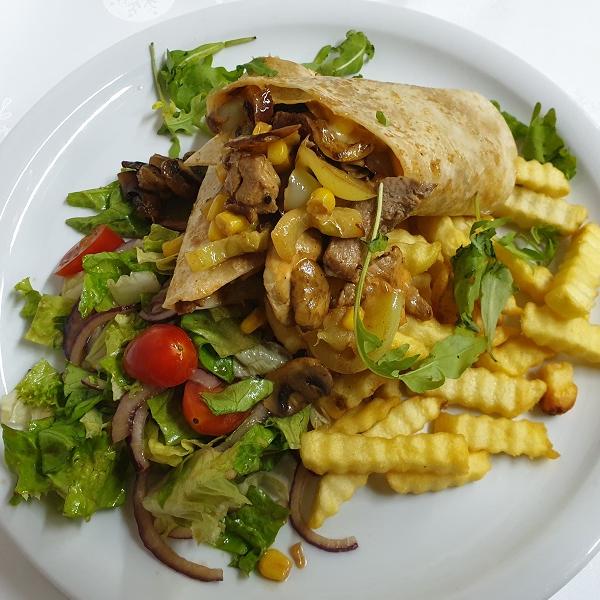 (Tortilja, piletina, sezonsko povrće, pica sir, pavlaka, kukuruz, matovilac)