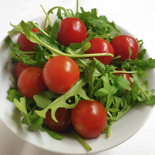 Fileti brancina 300gr, blitva, bareni krompir, šargarepa, rukola, čeri paradajz
